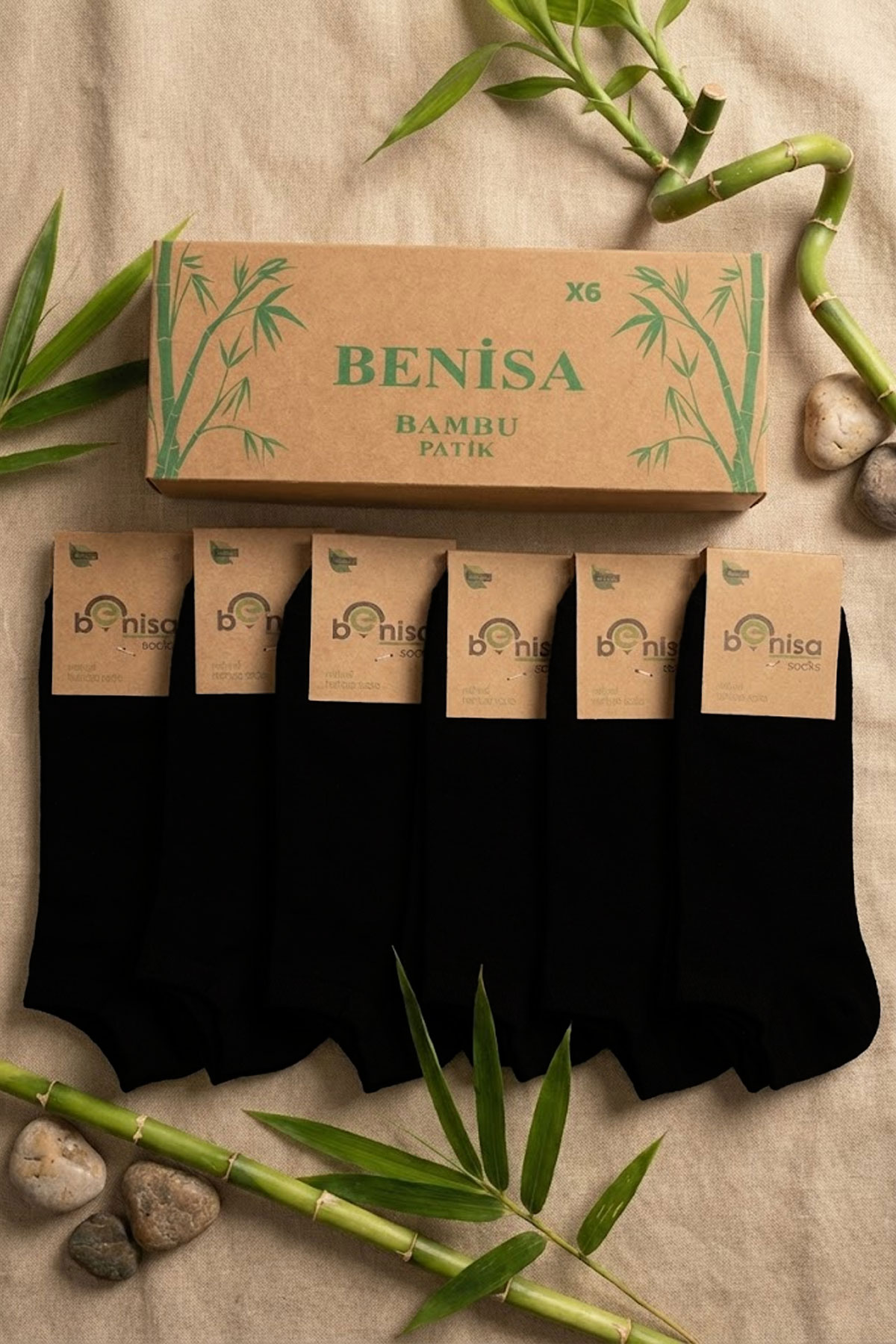 Erkek Bambu Erkek Patik Siyah Çorap Dikişsiz 6 Çift