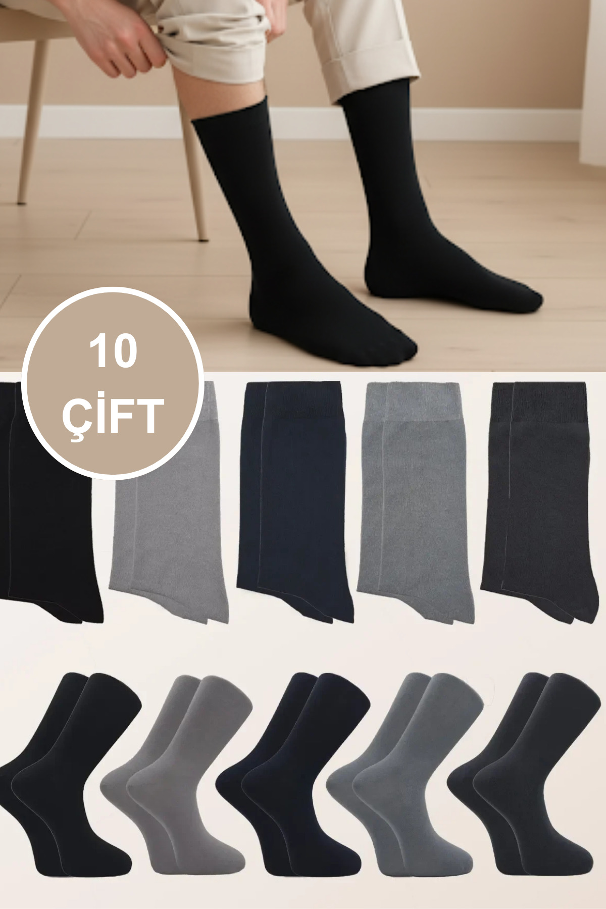 Erkek Bambu Soket Uzun Düz Çok Renkli Çorap Dikişsiz 10 Çift