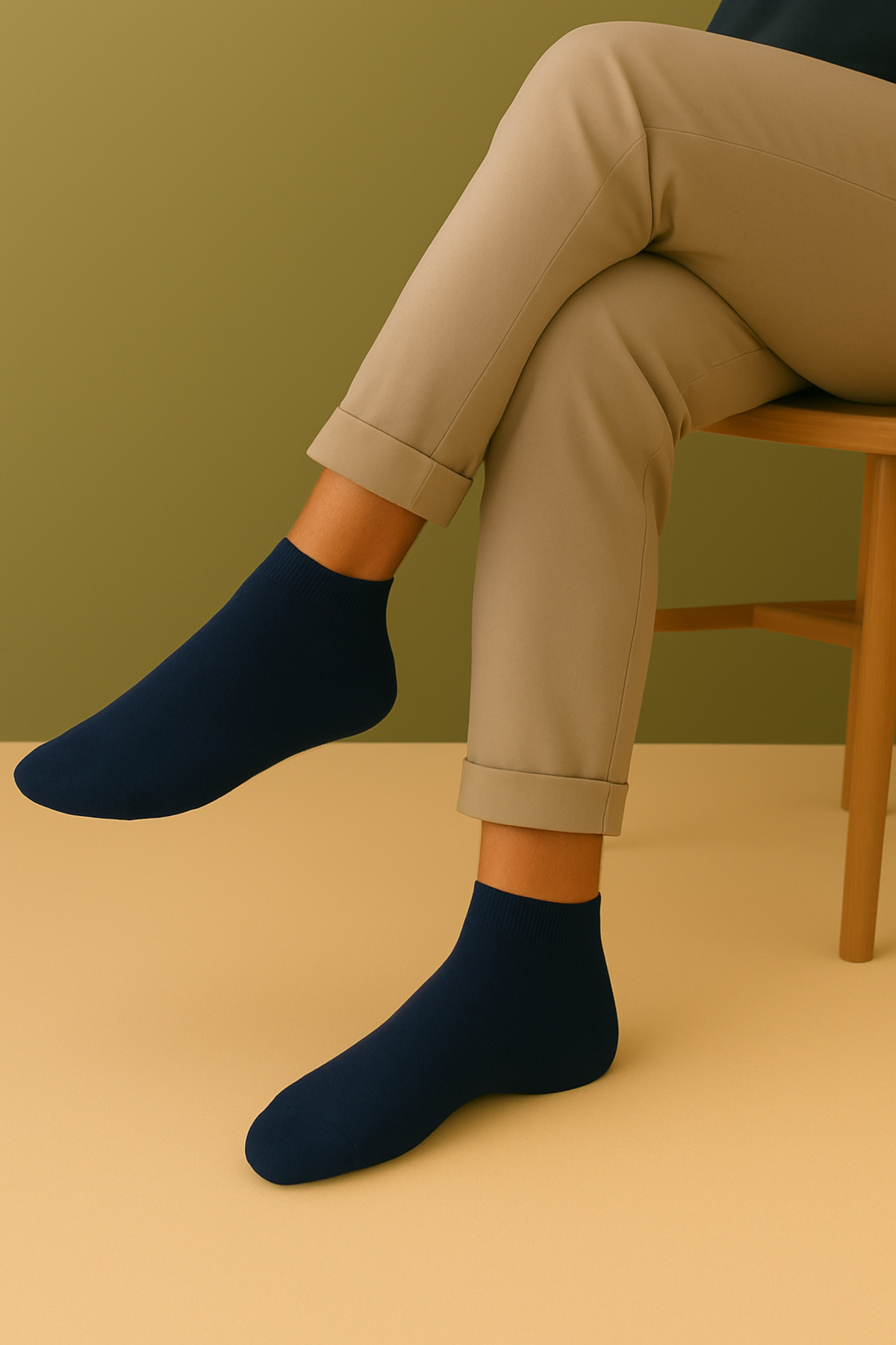 Erkek Bambu Yarım Konç Lacivert Çorap Dikişsiz 6 Çift