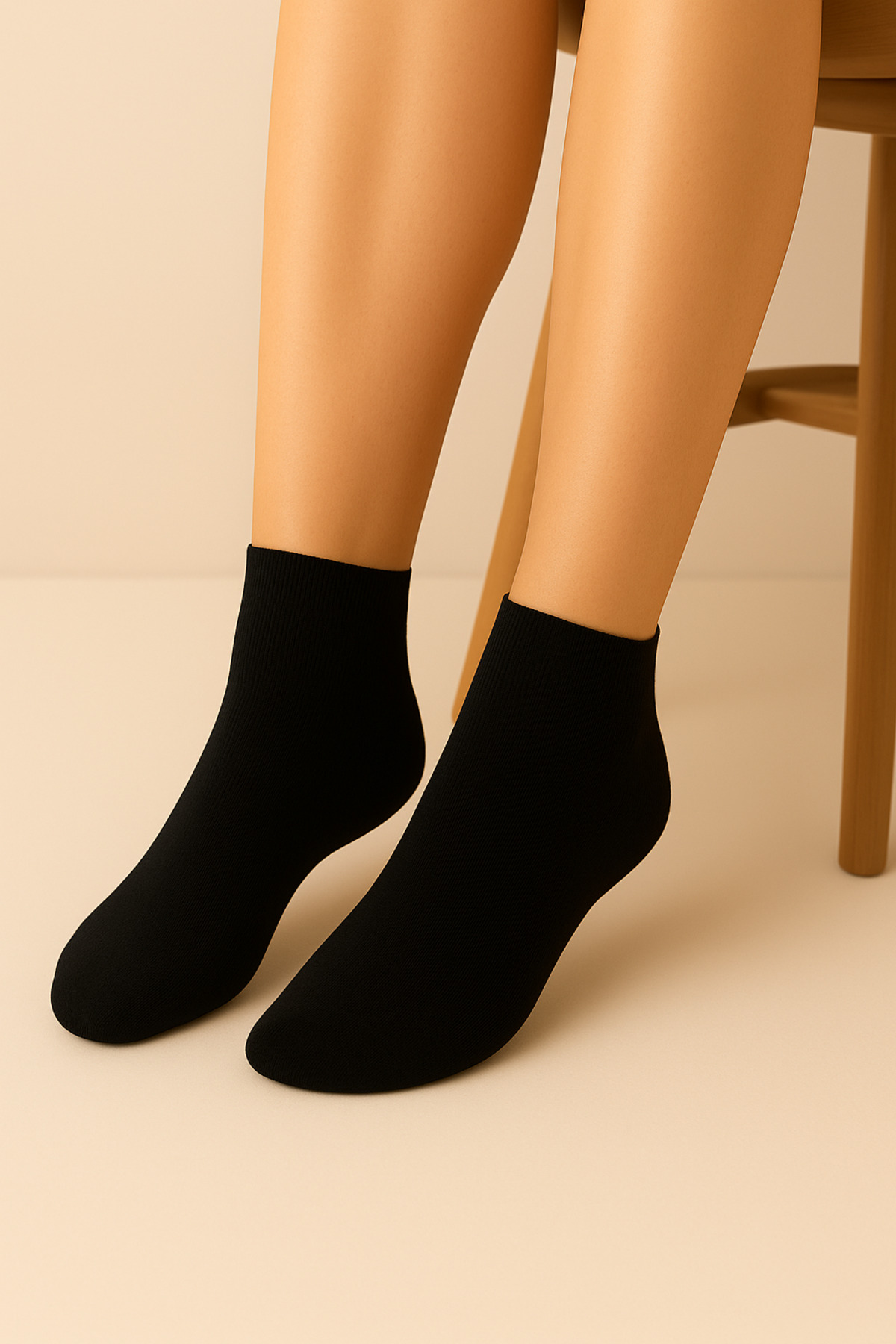 Kadın Bambu Yarım Konç Siyah Çorap Dikişsiz 6 Çift