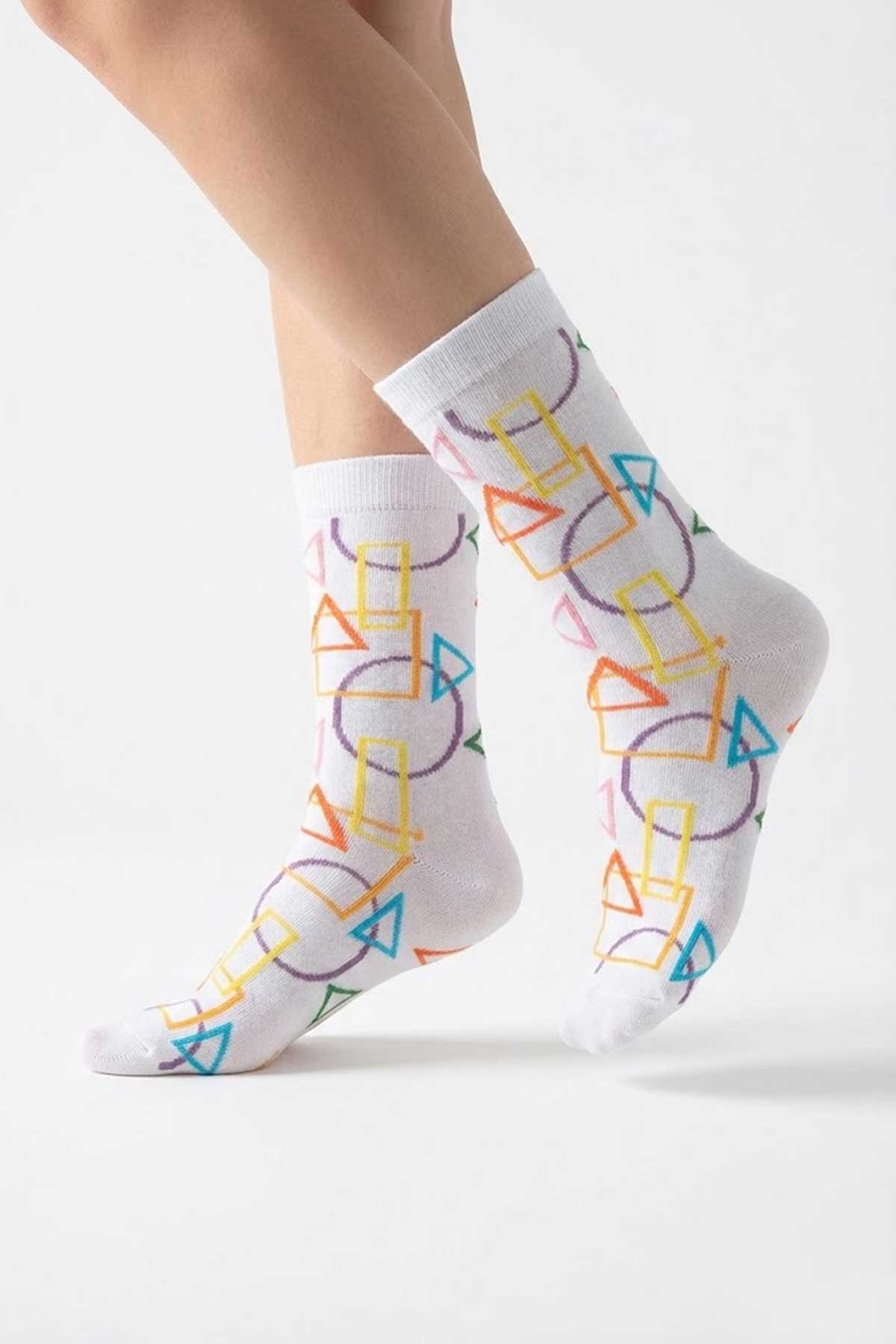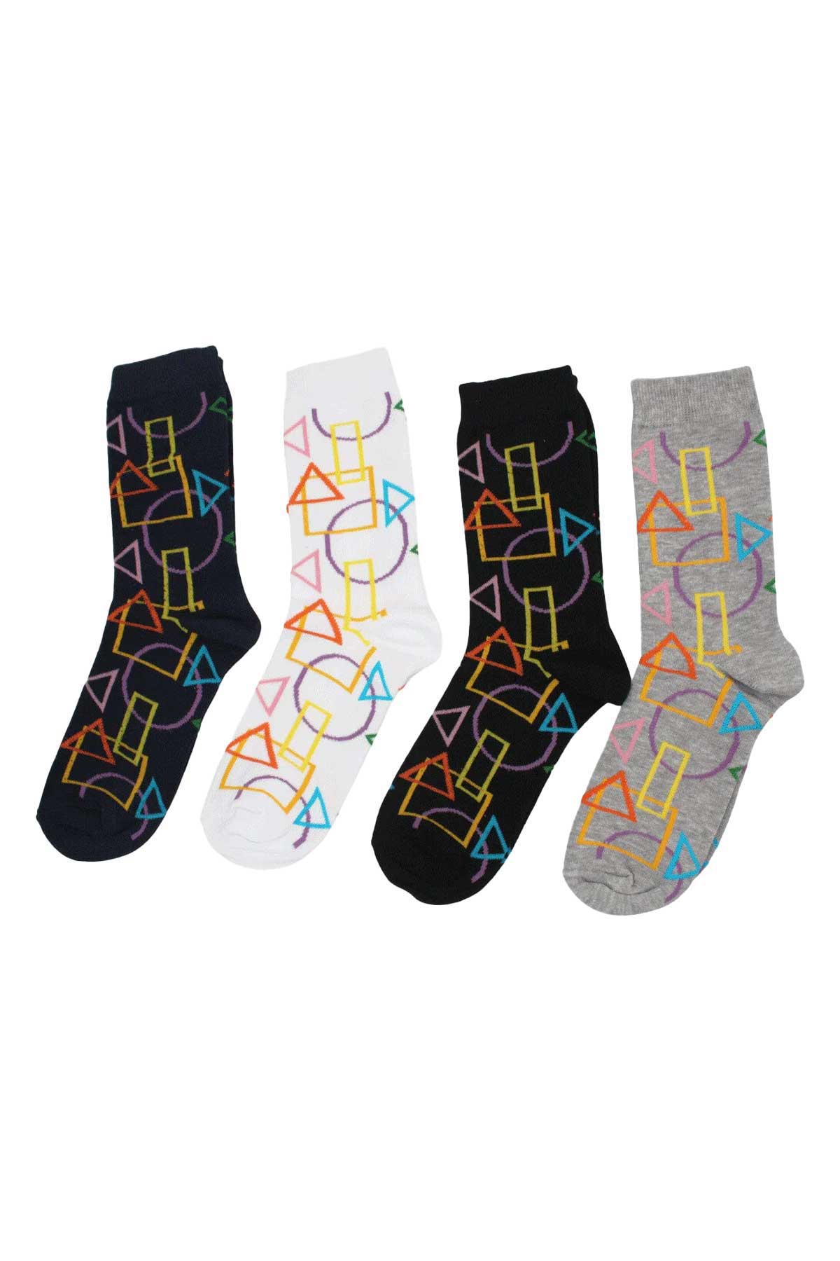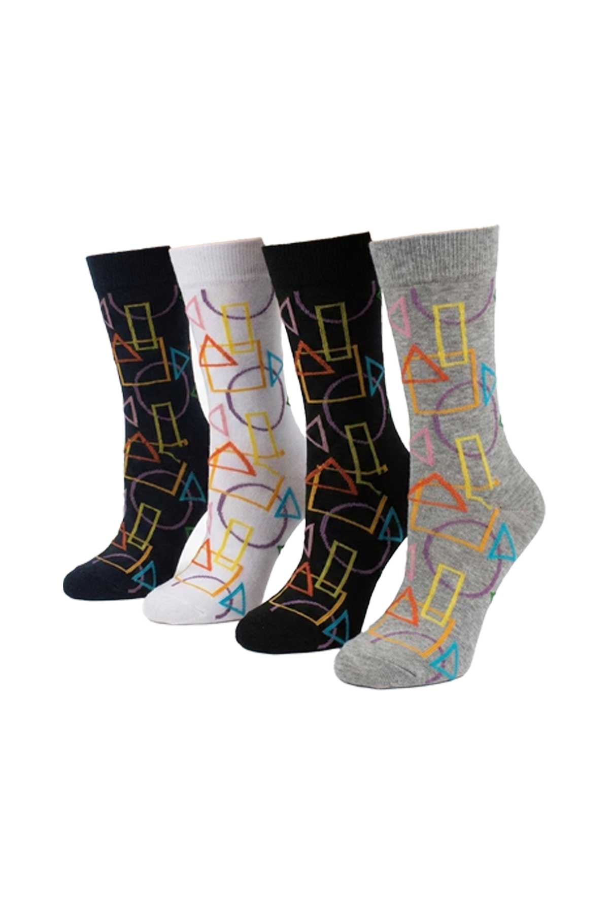 Kadın Desenli Pamuklu Soket Çorap 4 Çift