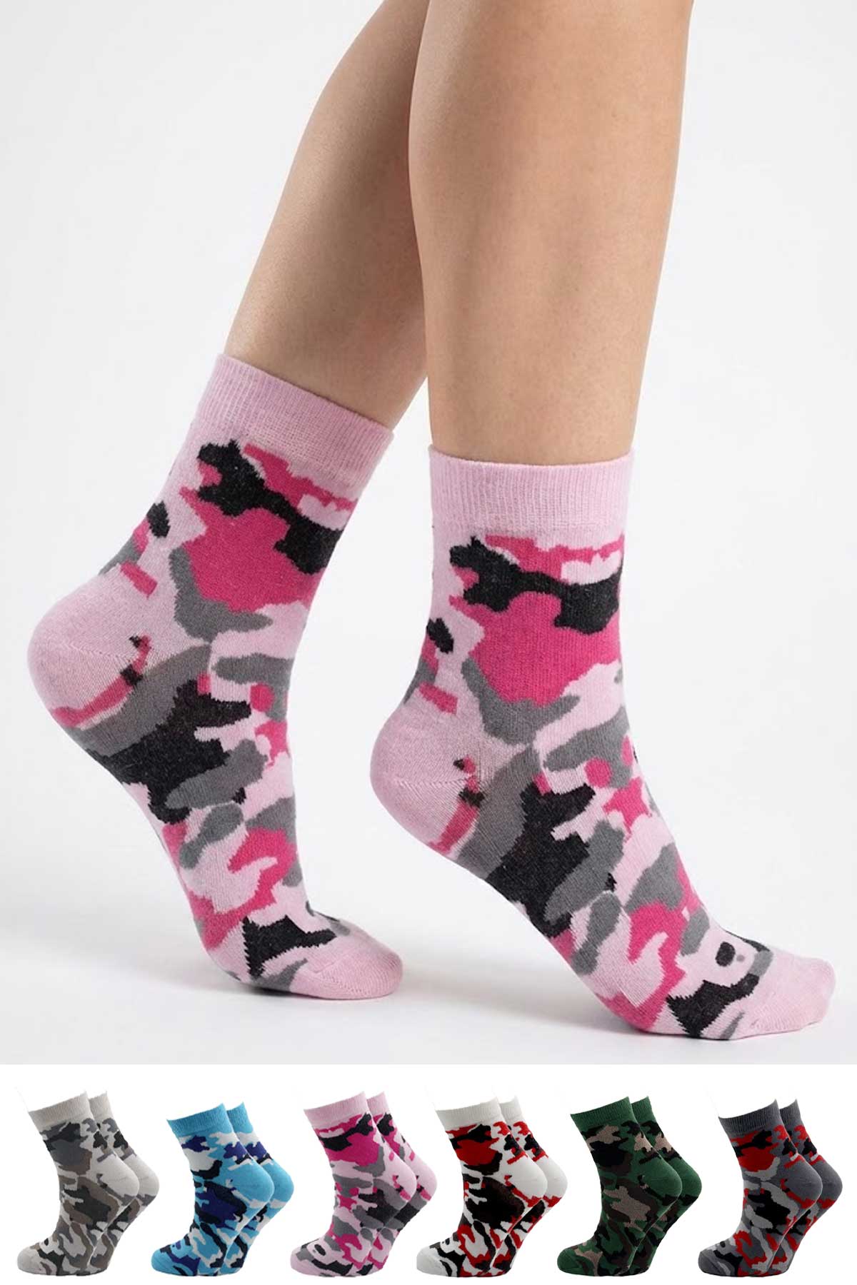 Kadın Yarım Konç Çok Renkli Desenli Pamuklu Çorap 6 Çift