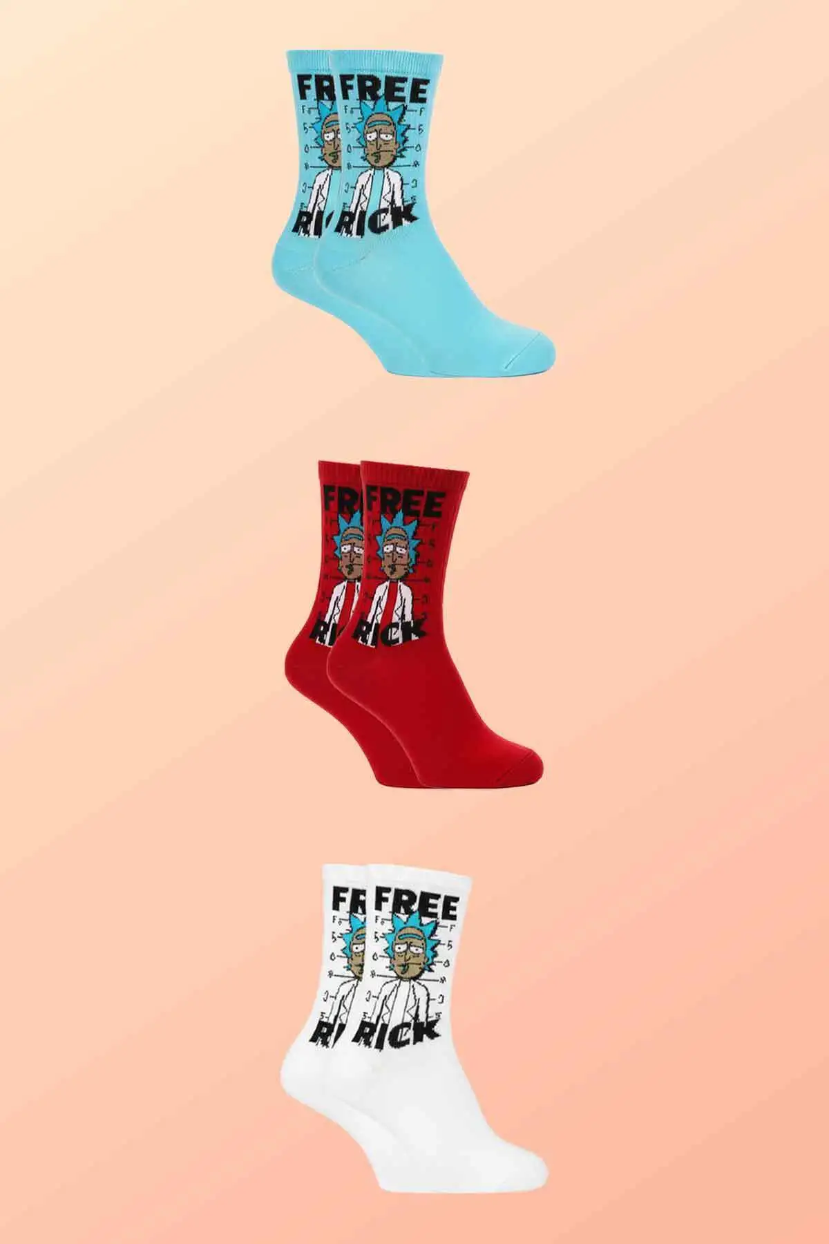 Unisex Renkli Free Rıck Desenli Çorap 3 Çift